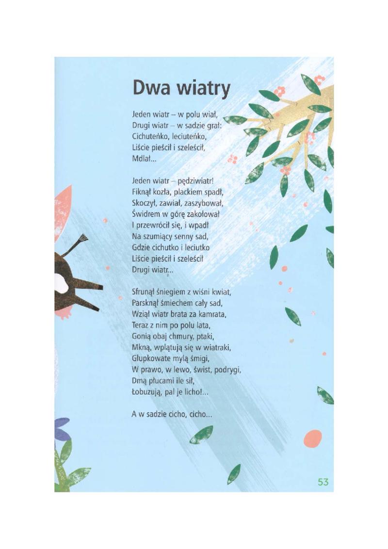 Na koniec warto zwrócić uwagę na humorystyczną stronę wiersza, która sprawia, że tekst Tuwima jest wręcz zaraźliwy. Zabawne opisy, takie jak „łobuzują, pal je licho!”, z łatwością wywołują uśmiech na twarzy czytelnika, pokazując, że nawet w poezji można odnaleźć radość oraz lekkość. „Dwa wiatry” nie przynależy jedynie do dziecięcej literatury – to także przypomnienie dla dorosłych, iż życie przypomina wiatr, który zawsze porusza się naprzód, pełen zaskoczeń oraz humoru; wystarczy tylko umieć je dostrzegać. Dwa wiatry dzielą się więc metaforą naszej codzienności, a każdy z nas nosi w sobie odrobinę pędziwiatra i leciutkiego wiatru.